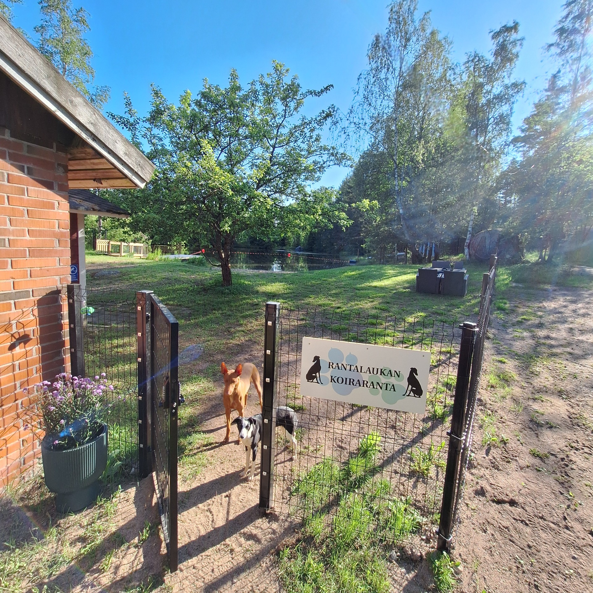 Rannalta lammelle avautuva maisema on kaunis ja seesteinen, jota katsellessa varmasti mieli lepää. Vaikka koirasi ei olisi se kaikkein suurin vesipeto, voi rannalla nauttia vaikka rantaviivaa nuuhkien tai vedessä rennosti kahlaillen.